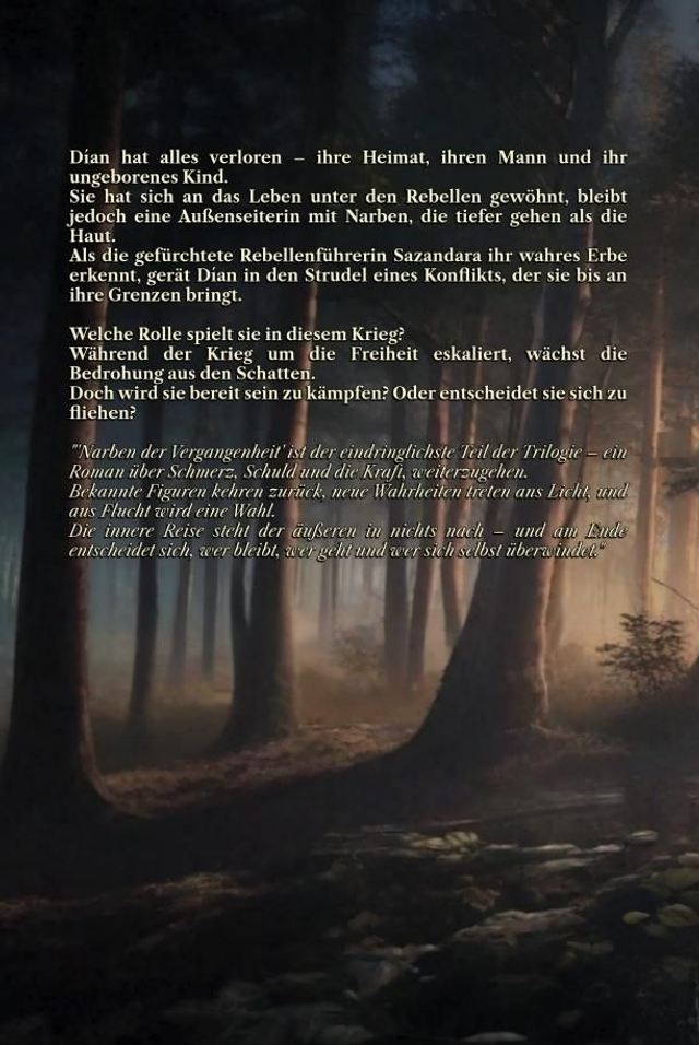 • "Narben der Vergangenheit“ ist der eindringlichste Teil der Trilogie – ein Roman über Schmerz, Schuld und die Kraft, weiterzugehen. Bekannte Figuren kehren zurück, neue Wahrheiten treten ans Licht, und aus Flucht wird eine Wahl. Die innere Reise steht der äußeren in nichts nach – und am Ende entscheidet sich, wer. bleibt, wer geht und wer sich selbst überwindet."